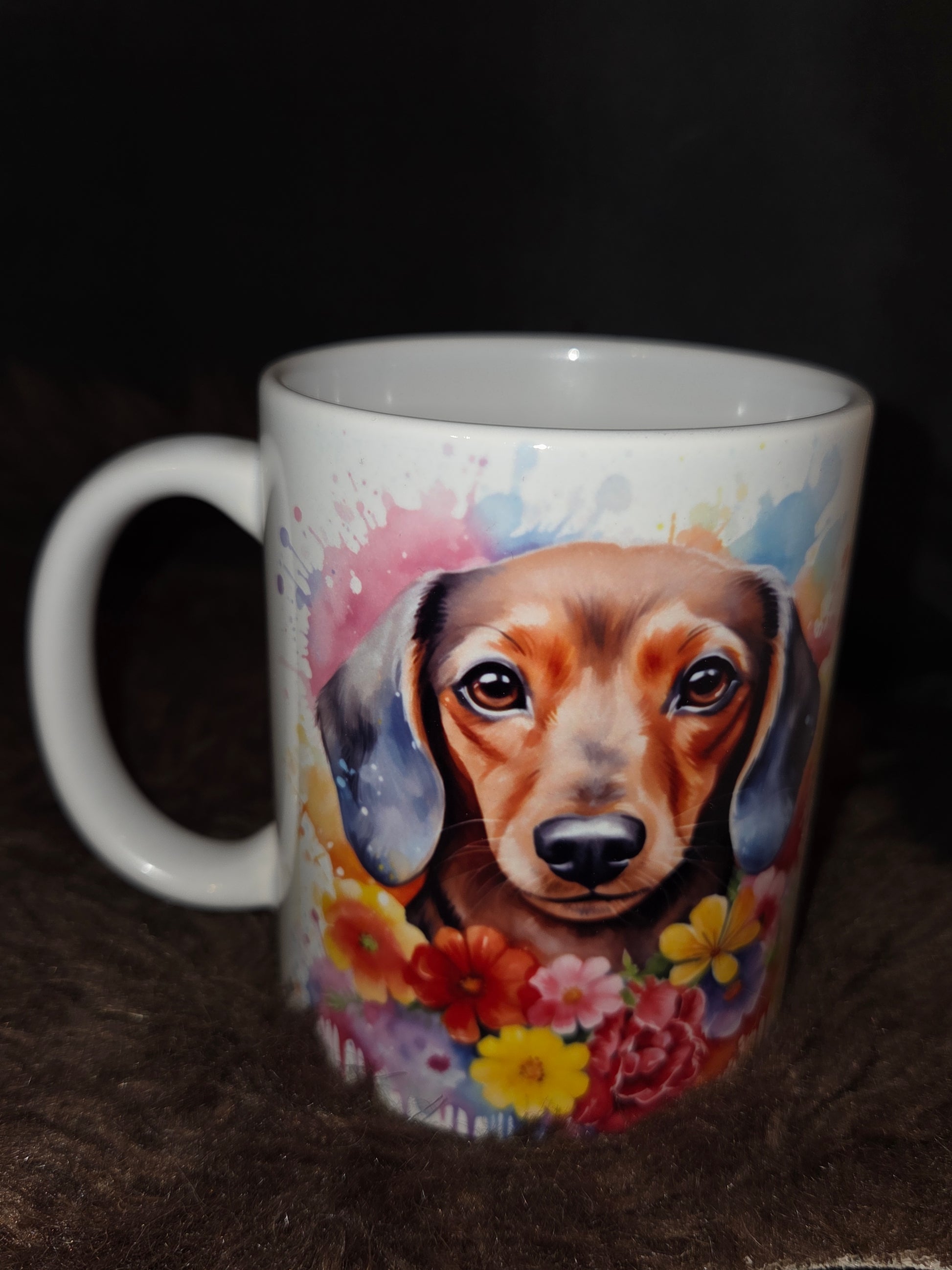 Deze aquarel teckel mok is een echte eyecatcher voor hondenliefhebbers!