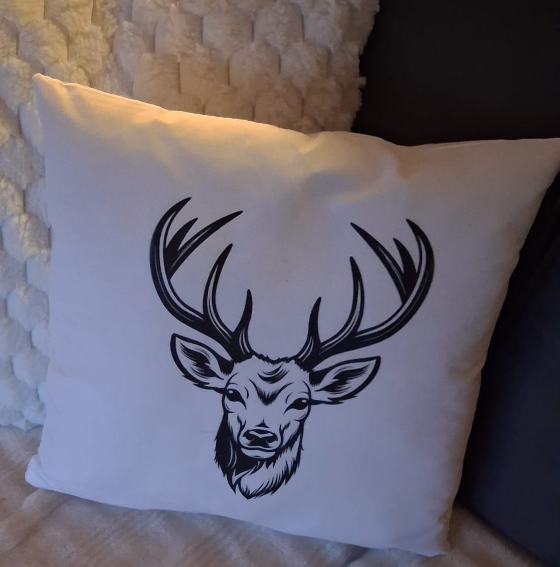 Wit Herten Sierkussen – 40x40 cm